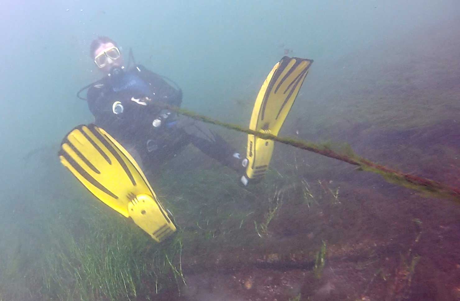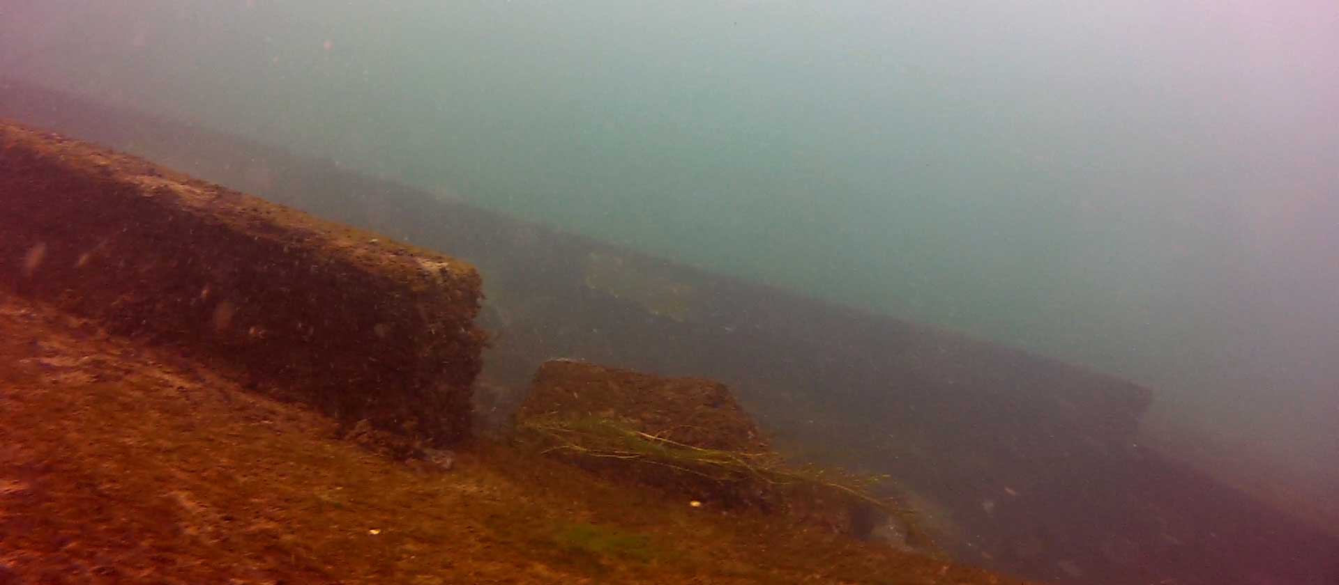 If you ascend here, you’ll notice a couple of distinct features at the top. First of all, there’s the ripping current that I keep mentioning that is present at the start of all the lock walls. You are a mere 15 feet from the surface so take great caution with your buoyancy to keep from ascending further. Secondly, you should notice the curved concrete rim of this wall, covered in zebra mussels but virtually no plant life. Keep close to your buddy – it’s easy to get separated. The entire drift on the “grassy” portion will be at 15 feet or less.