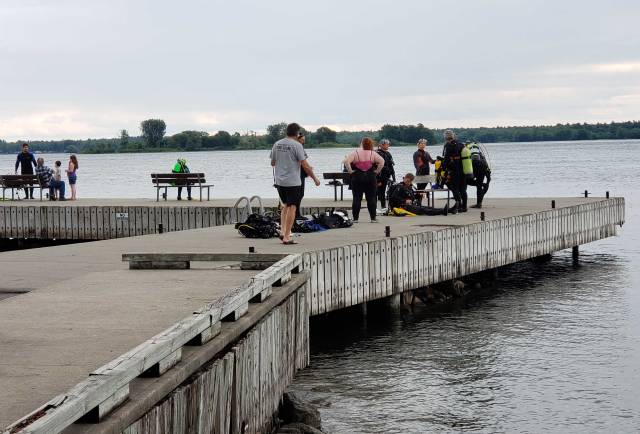 Right now, water level is at its usual low (it has been for most of the season). River current is also very low, for 2 reasons. Downstream, outflow at the Cornwall Dam remains fully open to ease Lake Ontario levels – this keeps the water level low in Morrisburg. Upstream, the Iroquois Dam has all gates open – this keeps river flow consistent and quiet.