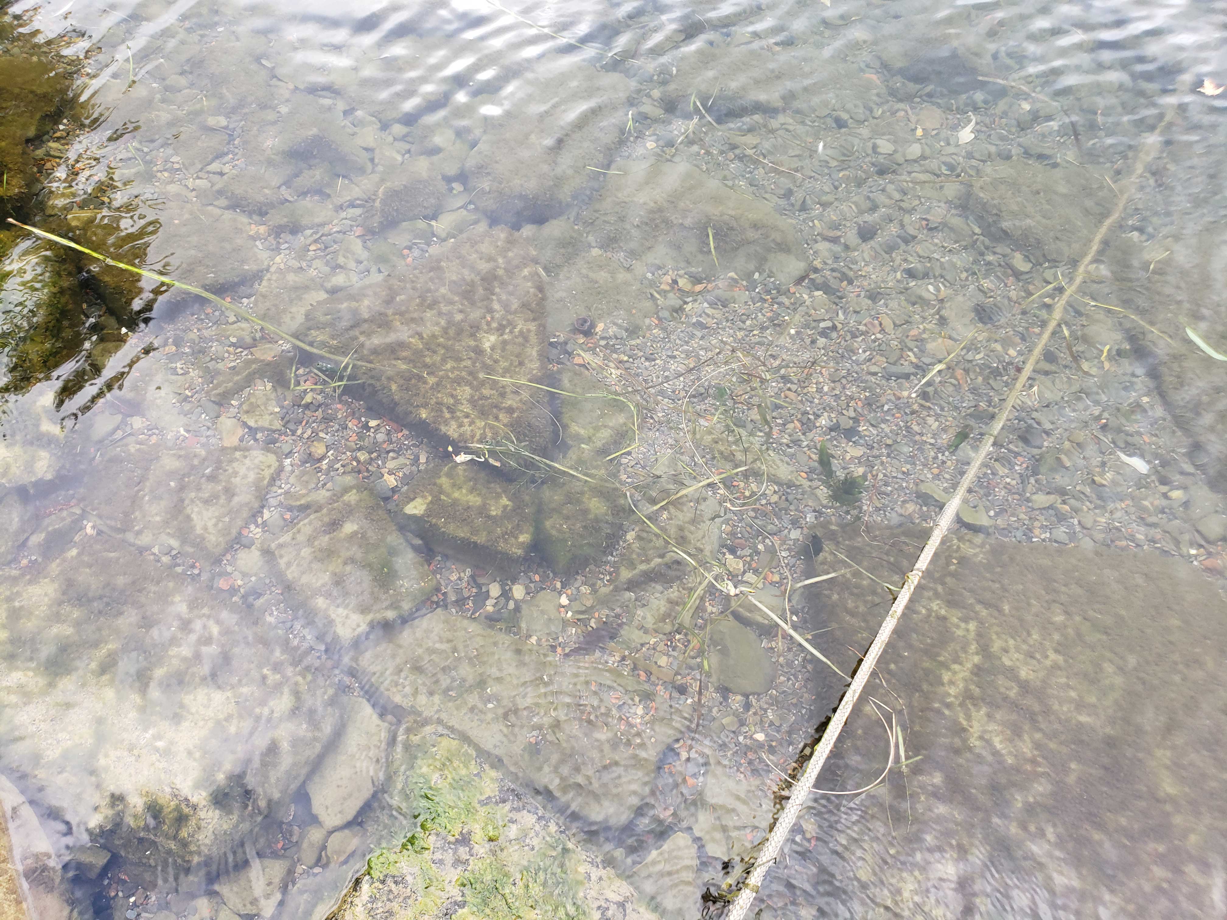 On the up side, getting in the water at our place has become a lot easier. We aren’t used to seeing the river bottom pebbles and the scattered boulders as we enter! However, we have to get well into the weeds at this time of year before we can submerge.