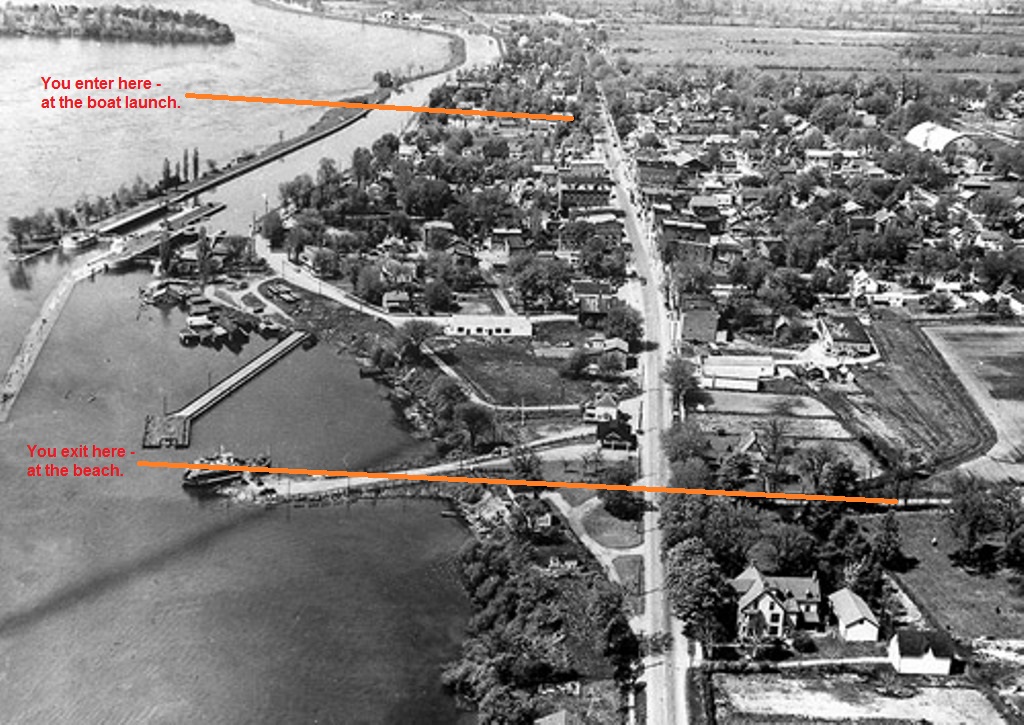 Most dives at Lock 23 start at the same place and end at the same place. Here’s a great photo showing just how much the village has changed in relation to the dive site!