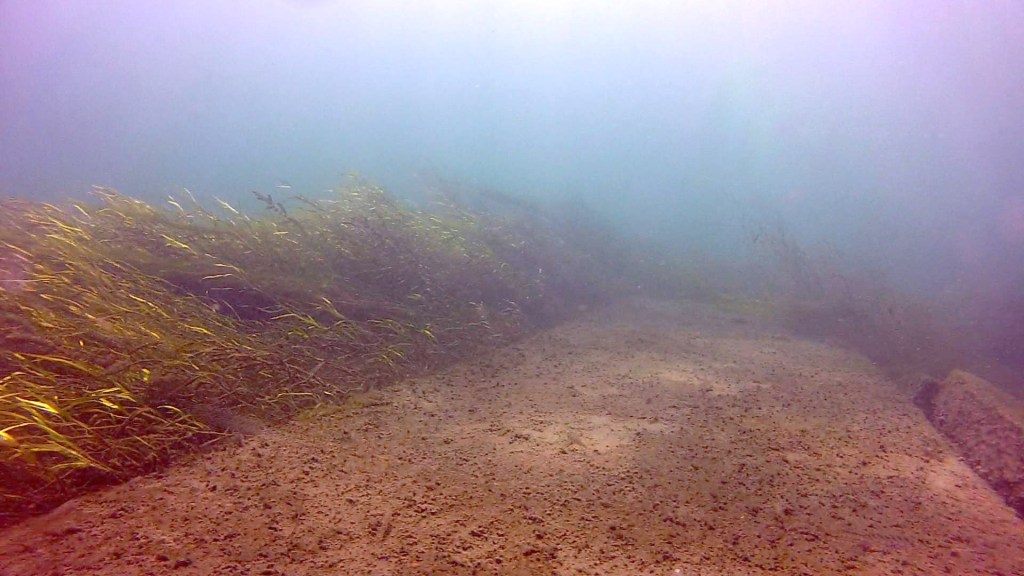 Enter the water by either a stride jump off the end of the dock, or walking over the rocks on its upstream side. DO NOT USE THE BOAT RAMP. It is off-limits to divers as it is relatively enclosed and very difficult for boats to see you. Head due south using a compass (there is very little current around the dock) – you’ll descend fairly quickly to 10 feet.