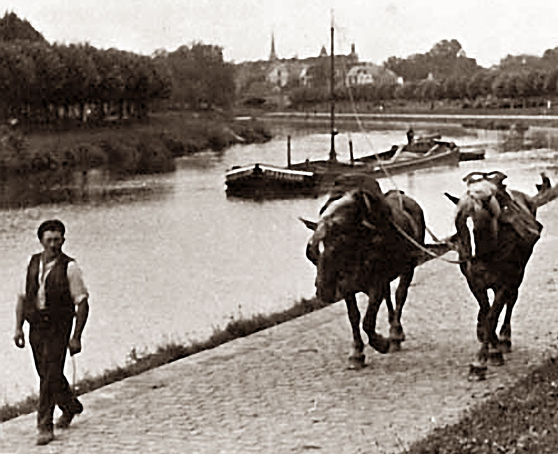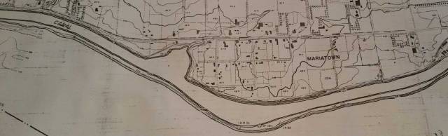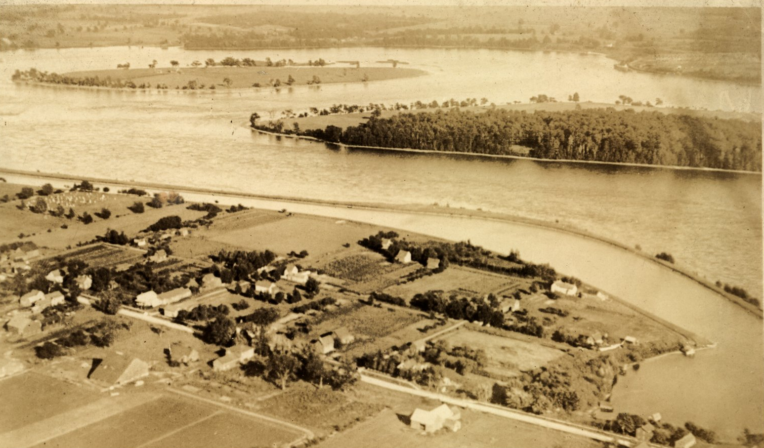 Long before the locks, the canal was a simple hand-dug channel kept separate from the river by a berm and used to pull watercraft upstream with horses on a towpath on shore.