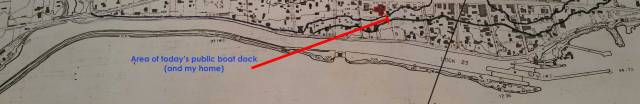 From approximately the area of today’s Public Boat Dock (where you normally enter to visit the Locks) to the locks themselves, the north shoreline wall is a sloping berm lined with stone, similar to the Cardinal canal pictured above. Here is a brief video of this from my post on drifting to the locks.