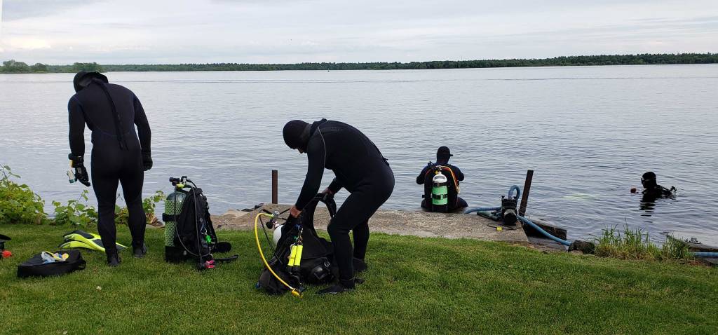 Running beside the canal, early Canal Street was a dirt road. When Lock 23 was built, the road and its accompanying sidewalk were paved so are now easily seen on dive entry at this location.